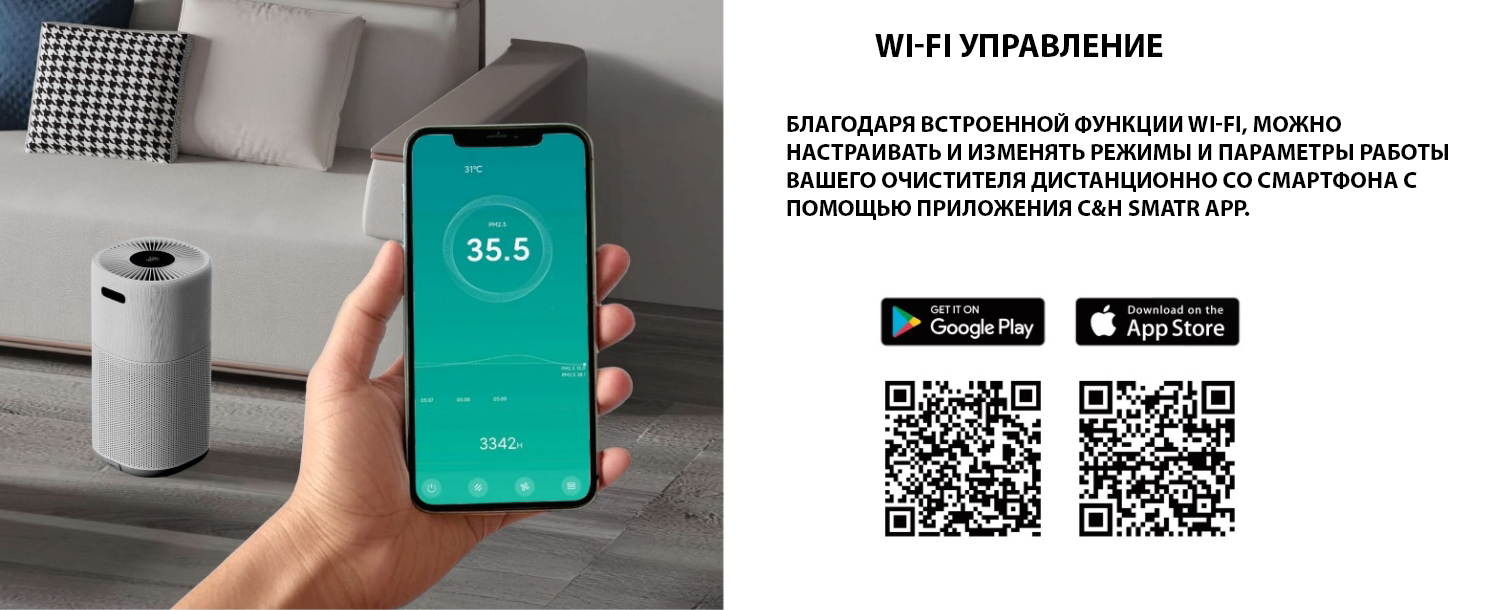 Площадь до 45 м²; 3‑ступенчатая фильтрация; Таймер; Индикатор замены фильтра; Ионизация воздуха Наличие на складе Есть в наличии Управление Сенсорное, Wi-Fi...