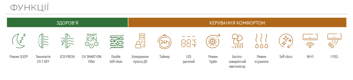 Модуль Wi-Fi; Фреон R32; Технологія CH 7-SKY; Фільтр CH SMART-ION; Функція I FEEL НАЯВНІСТЬ НА СКЛАДІ В наявності ТИП Внутрішній блок...